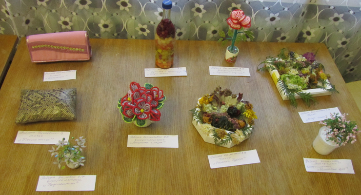 Любительским объединением «Мастер-класс», под руководством библиотекаря Порядиной Г.В., к предстоящему празднику организована выставка декоративно-прикладного и художественного творчества «Мир сотворенный руками».